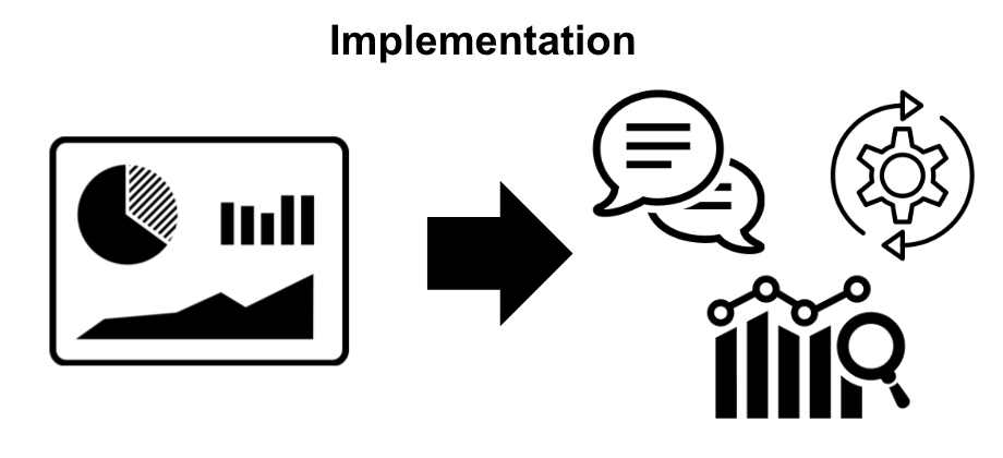 Once you already know what your drivers are and have detailed out how to achieve those through the use of AI then the implementation can be straightforward. The general process for implementing AI solutions can be simplified down to a 3 step process: Prep, Analysis, Implementation.